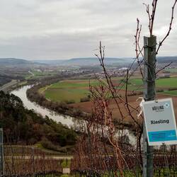 Der Weg führt jetzt kilometerweit durch die Weinberge, die einen dezenten Hinweis für den Rieslinghiker parat halten.