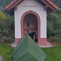Heute zelte ich stilgerecht vor einer kleinen Marienkapelle, da es keine Hütten gibt, zumal der Waldboden völlig aufgeweicht ist, ganz anders als die kleine Wiese vor der Kapelle.