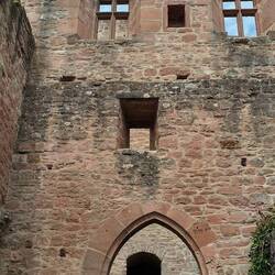 Nach dem Aufbruch von der Burgruine Collenberg ging's zur Henneburg, eine vollständig renovierte Burganlage, die bereits um 1700 heruntergekommen war. Am interessantesten ist der Bergfried gewesen, der mit seinen Buckelquadern noch aus der ursprünglichen romanischen Bauphase stammt.