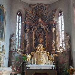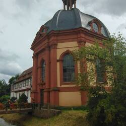 Nach Zellingen geht's über den Main nach Retzbach, wo ich in die Stadtkirche gehe, die von Balthasar Neumann gebaut wurde, der auch für die Würzburger Residenz mit dem berühmten Fresko von Tiepolo verantwortlich war.