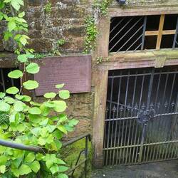 Bei meiner Besichtigung konnte ich den einmaligen Wehrgang nicht finden, der zwar auf dem Plan ist, aber dort konnte ich nur einen Brunnen finden. Als ich frage, winkt er nur, damit ich ihm folge. Wir hetzen die Treppe hoch, hinter zu dem vermeintlichen Brunnen, da sagt er mir, das ist ein alter Abstieg hinunter in die Wehranlagen.
