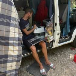 Sind die Fenster und Türen zu, staut sich die Hitze super schnell und extrem doll, lässt man den Kofferraum offenstehen, ist die Luft zwar angenehmer, aber die Mücken essen einen auf.