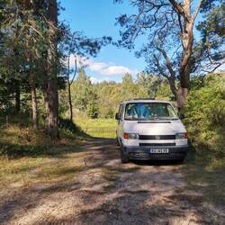 Als wir wieder beim Bulli sind, wird es langsam dunkel und wir diskutieren kurz, ob wir jetzt nach Vilnius durchfahren oder uns einen Platz in der Nähe suchen. Wir entscheiden uns für letzteres und fahren über wildeste Straßen im schwindenden Licht durch Wälder und stolpern über Schlaglöcher, immer an der Gauja entlang, zu einem Platz direkt oberhalb der Gauja. Hier stehen wir gut für die Nacht.Meer informatie
