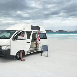 Beautiful pristine beach. We took our camper on the beach for a drive on the sand (it's not 4WD) but the sand was so hard it was OK
