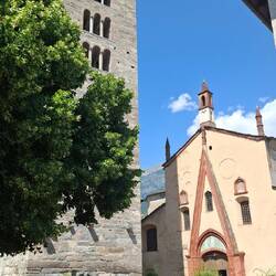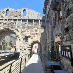 Na een nachtelijk onwedertje toch droog kunnen aanzetten deze morgen. Ik had voor deze zekerheid mijn regenhoes over mijn rugzak getrokken, kwestie de weergoden niet uit te dagen. Maar kijk. Tegen 12u30 waren we al ter plekke in Aosta. Het eerste deel zit erop. Morgen een rustdag zoalsthuis gepland.
