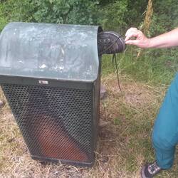 Nicht Rotkäppchen, aber Frau mit rotem Regenschutz?