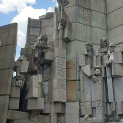Da hat sich die hiesige Zementindustrie ein feines Zubrot verdient: Hoch über dem Städtchen Shumen wurden Zilliarden Kubikmeter Beton zu einem monströsen Denkmal verarbeitet, mit heroischen FigurenLeia mais
