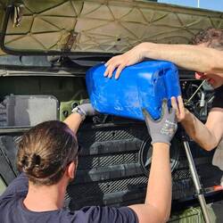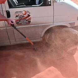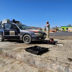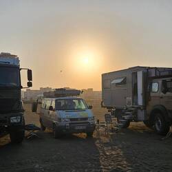 Nach zwei Tagen Offroad leckt die Truppe erstmal ihre Wunden. Kaum wieder festen Boden unter den Rädern, richtet Jörn mit wohldosierter Gewalt seinen derangierten Unterbodenschutz. Wasser tanken,Read more