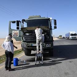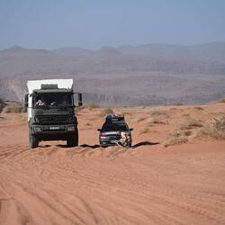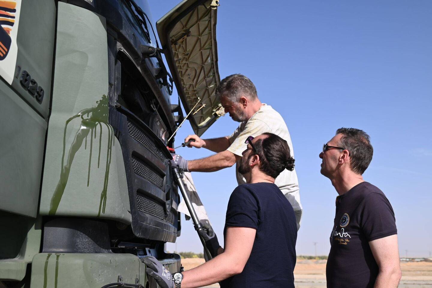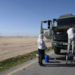 Auf dem Weg zur Saudischen Grenze tut sich Jörgs Laster auf einmal durch Inkontinenz hervor. Das Kühlwasser-Leck ist schnell gefunden. Eine Schlauchklemme und drei Kabelbinder später sind wirRead more