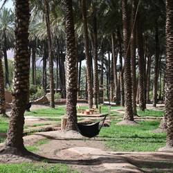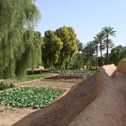 Im Schatten des Baldachins riesiger Dattelpalmen gedeiht alles erdenkliche Gemüse von Auberginen bis zu Zwiebeln, dazu diverse Gewürzpflanzen. Ein Bachlauf plätschert durch die weitläufige Park-Read more