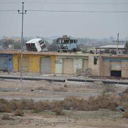 Viel Sehenswertes gibt es an der Strecke von Mossul nach Baghdad nicht zu sehen. Die Landschaft ist flach und monoton, die Strecke führt durch kilometerlange Gewerbegebiete. Zilliarden parkender LkwRead more