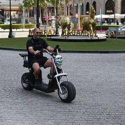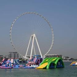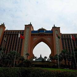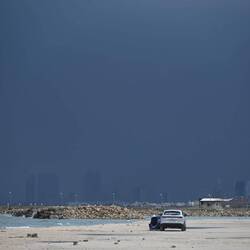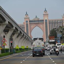 Ein Ausflug nach Dubai mit dem eigenen Kraftwagen wäre nicht komplett ohne eine Ehrenrunde über die künstliche Insel Palm Jumeirah. Dass hier dem Meer mit unvorstellbarem Aufwand eine Neubausiedlung im Palmwedeldesign abgetrotzt wurde, sieht man freilich nur aus der Vogel- oder ISS-Perspektive. Uns bleibt der Blick von oben leider verwehrt. Denn das Riesenrad Ain Dubai am nahen Dubai Beach, mit 250 Metern satte 115 Meter höher als das London Eye, dreht sich heute nicht. Aus Sicherheitsgründen, heißt es ohne nähere Begründung. So bekommen wit letztlich doch noch etwas mit vom Irankrieg - kollateralbetroffen, quasi.Læs mere