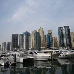 Im Yachthafen von Dubai, der Marina, wird einem erst so richtig bewusst, unter welch widrigen Umständen die Reichen ihr karges Dasein fristen. Eingebettet zwischen Hochhausriesen dümpeln ihre bescheidenen Schifflein. So richtig ernst zu nehmende Kähne in der XXS-Flugzeugträgerklasse sind indes nicht dabei, was spontanes Mitleid auslöst.