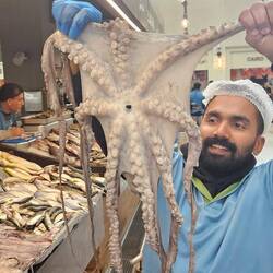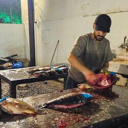 Unser ruhiges Nachtlager haben wir am Fischmarkt aufgeschlagen - ein frisch renovierter Komplex mit einem deutlichen Überangebot, das sich darin manifestiert, dass Händler und Gastwirte mit einiger Penetranz um Gäste buhlen. Lecker Fisch gab's am Ende aber doch auf den Teller.Læs mere