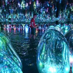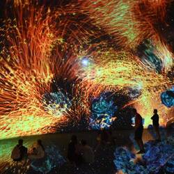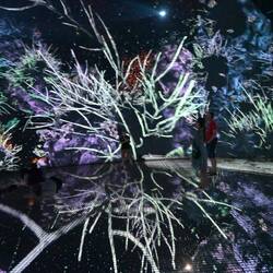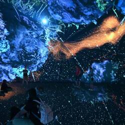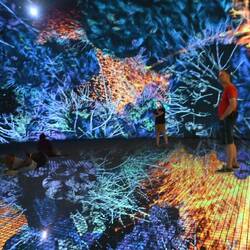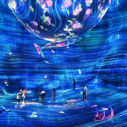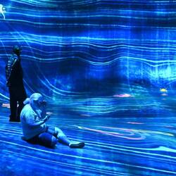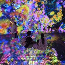 Was von außen wirkt wie eine am Boden gelandete, erstarrte Wolke birgt innen eine Wunderwelt der Imagination, die mit gängigen Superlativen nur unzureichend zu beschreiben ist. Die Besucher von "teamLab Phenomena" tauchen ein in eine Wunderwelt projizierter Farben und Formen, sie verschmelzen mit Kunstwerken in steter Bewegung. Das ist betörend und berauschend schön.