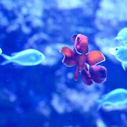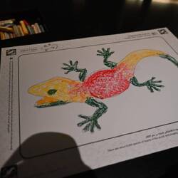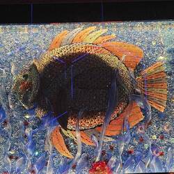 Kreativ aktiv werden die Besucher, bevor sie ein gigantisches Aquarium betreten. Fische, Lurche, Frösche oder Fabelwesen dürfen handcolloriert werden, bevor ein Scanner sie zum Leben erweckt und in das Riesenplanschbecken ohne Wasser schickt.