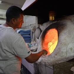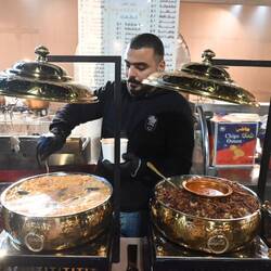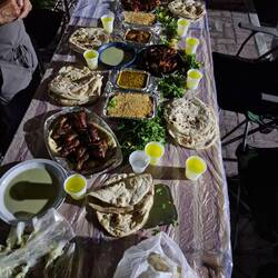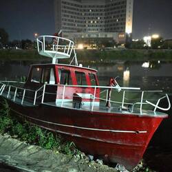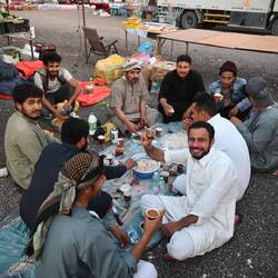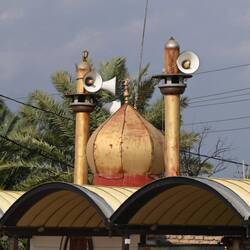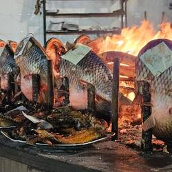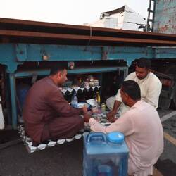 Wir dürfen zwar auf eigene Faust losziehen, um ein Gasthaus zu suchen. Doch als wir zielstrebig die falsche Richtung einschlagen, taucht plötzlich die eingangs erwähnte Eskorte auf und geleitet uns zu einem hervorragenden Fischrestaurant, wo wir gegrillten Karpfen aus dem Tigris genießen - eine Spezialität in Baghdad. Kaum haben wir bezahlt, holen uns die Uniformierten wieder ab. Mit uns essen durften sie nicht: Unsere Einladung mussten sie ausschlagen.