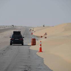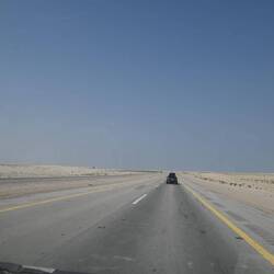 Ist die Erde am Ende doch eine Scheibe? Fast könnte man auf die Idee kommen, wenn man von den Vereinigten Arabischen Emiraten via Saudi-Arabien nach Katar fährt. Denn so flach wie hier ist es sonst nirgends. Sand, soweit das Auge reicht. Sand bis zum Horizont. 500 Kilometer Nichts. Zumindest nichts von sonderlichem Belang. Selbst das als kleines Highlight auf der Strecke eingeplante Sinkhole, ein tiefer Krater im Gestein, erweist sich mangels Wasser im tiefen Bassin als Enttäuschung.