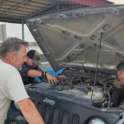Mit einem Mann mittleren Alters - sein komplizierter Name bleibt mir leider nicht im Kopf - unterhalte ich mich besonders ausführlich, denn schnell kommt das Thema auf Oldtimer. Er sei in einer Gruppe von Freunden, "80ies Gen", die sich immer am Freitagabend zum Cruisen trifft mit klassischen Cadillacs, Buicks oder Mercedes, aber auch mit jüngeren Amerikanern wie den hier sehr beliebten Dodge Chargern. Die Classic-Car-Szene hier ist klein, aber es gibt sie.