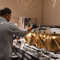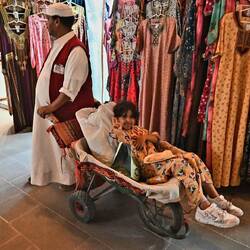 Dort nämlich, wo man ihn vielleicht am wenigsten erwarten würde, liegt der alte Souk, ein traditionelles Gewirr an Einkaufsstraßen, thematisch wie üblich sauber sortiert. Hier gibt es nicht - wie im nahen Mega-Mall The Avenues, das gediegenste Läden samt Kunsteislaufbahn auf einem Kilometer Länge vereint - Hochglanz-Marmor und internationales Gepräge. Hier quälen sich Autos und Fußgänger aneinander vorbei vor grellen Geschäften, die ihre Auslagen bis weit auf die Straßen und Gassen ausbreiten. Die Händler, überwiegend aus dem indisch-pakistanischen Raum, decken dutzendfach dasselbe Sortiment ab, doch sie scheinen alle ihre Kundschaft zu haben. Auch die zahllosen Juweliere, deren Gold-Angebot kaum zu fassen ist. Schmuck und Geschmeide dienen hier als Geldanlage und vor allem den Frauen als Lebensversicherung.