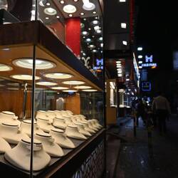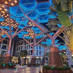 Wohltemperiert und gediegen geht es auch im Crystal Walk auf der Insel Gewan zu, Dohas längster klimatisierter Fußgängerzone. Sie ist nachts besonders sehenswert mit ihren zahllosen, die Farbe wechelnden Schirmen, die an das Blätterdach von Bäumen erinnern. Die eigentlichen Stars der Straße sind allerdings in den Boden eingelassen: Unzählige Dioramen mit Motiven aus buntem Kristall, die regelmäßig gewechselt werden. Eine glatte Zehn auf der Kitsch-Skala.