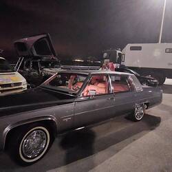 Eine halbe Stunde später reißt mich das sonore Brabbeln eines großvolumigen V8 aus dem Halbschlaf. Ich blinzle und sehe im Augenwinkel, direkt neben mir, das gelbe marker light eines 83er Cadillac. Heraus springen vier vergnügte Herren in weißen Gewändern. Mein neuer Freund hat schnell seine Kumpels aktiviert, um mir eine Freude zu bereiten zu später Stund. Die Nacht machen sie hier eh gern zum Tag.