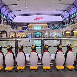 Gekühlt werden in der von Skulpturen geschmückten Einkaufsstraße in protzigem Stilmix nicht nur die Innenräume. Auch im Freien umschmeichelt kühle Luft aus dem Boden die Beine. Angenehm zwar - aber ob das der Erderwärmung gegensteuert, muss bezweifelt werden.