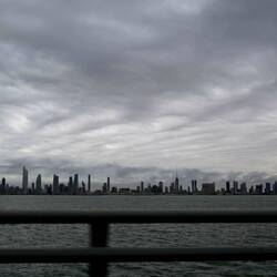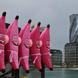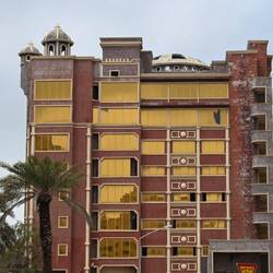 Manama ist übrigens die erste Stadt, in der wir Schäden durch iranischen Beschuss sehen. Mindestens drei Hochhäuser haben Treffer abbekommen. Auch hier erleben wir mehrfach Alarm und hören die Detonationen, wenn Drohnen oder Raketen erfolgreich abgeschossen wurden. Und auch hier tragen es die Menschen gelassen. Im British Club, in dem wir uns nach wochenlanger Abstinenz mal wieder den einen oder anderen alkoholischen Drink gönnen, wird die Aufforderung, vom Garten ins Innere zu kommen, nach der Entwarnung mit typischem Sarkasmus revidiert: Ein Kellner läuft mit Fahrradklingel und dem Schild "All clear!" durch die Räume.