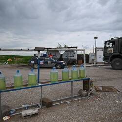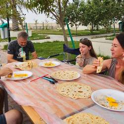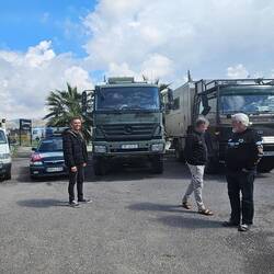 Kaum haben wir im dritten Anlauf einen Stellplatz für die Nacht gefunden, erscheint auf den Handys die Warnung vor Beschuss. Wenig später dann vier, fünf heftige Detonationen: Die Luftabwehr hat Raketen unschädlich gemacht. Später lese ich in der örtlichen Zeitung: Von 14 iranischen Waffen wurden 13 eliminiert, eine stürzte auf unbewohntes Terrain. Auch diverse Drohnen wurden allesamt abgefangen.