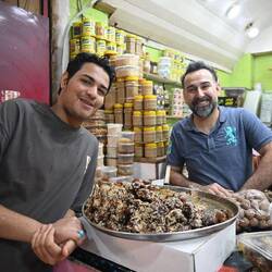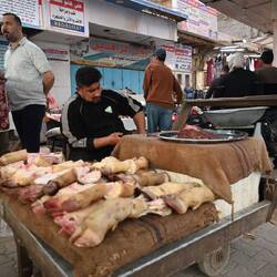 Im überdachten Souk, den Altstadt-Einkaufsgassen, bleibt es ebenfalls nicht trocken. Ruck-zuck werden die Gummiwischer ausgepackt und das Wasser zum Nachbarn geschoben. Rutschig bleibt's trotzdem.