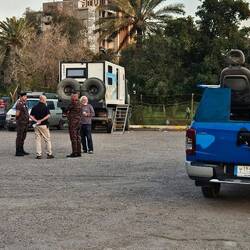 Ein Polizeiauto mit Blaulicht auf der Straße neben uns, zwei Polizisten mit MPs mit uns zu Fuß - so werden wir in Baghdad ins Wirtshaus geleitet. Mehr noch als am Beginn der Reise, vor gut sieben Wochen, haben Sicherheitskräfte ein wachsames Auge auf uns.