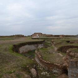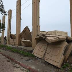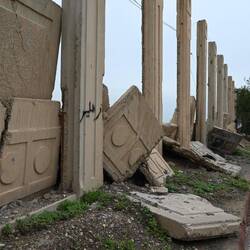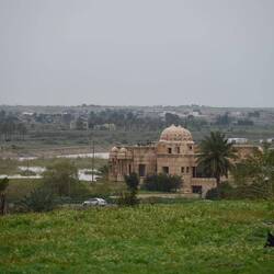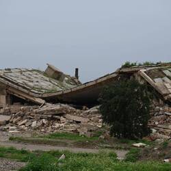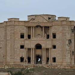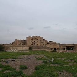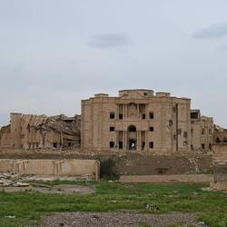 Wir haben gelesen, dass Saddam Hussein in einem Dorf bei Tikrit geboren wurde. Könnte es sich bei den Ruinen etwa um einen Palast des Ex-Diktators handeln? Google lens bestätigt diesen Verdacht anhand einer Bildersuche. Wir stehen also staunend - und völlig zufällig - vor zerstörten Zeugnissen einer beispiellosen Gewaltherrschaft. Der Auslöser meiner Kamera klickt im Stakkato.