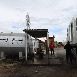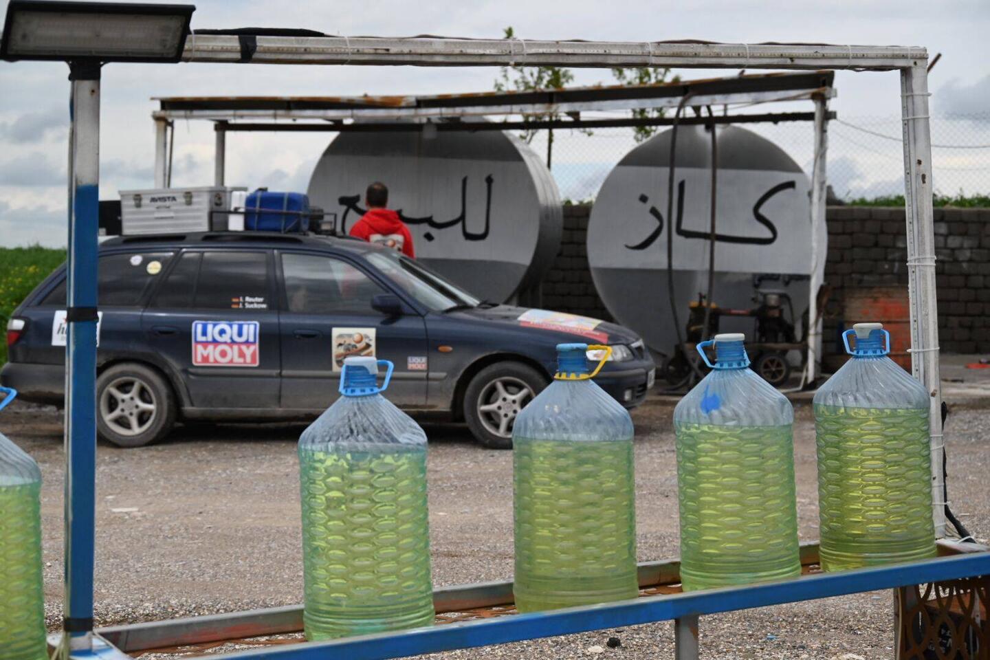 Bevor wir die Türkei erreichen, müssen die Tanks nochmal gefüllt werden - der Sprit ist im Irak deutlich billiger (Benzin ca. 60 Cent, Diesel 80 Cent). Allerdings erweist es sich als etwas mühsam, an Brennstoff zu kommen, zumal wir ja nicht ahnen können, dass uns kurz vor der Grenze einige top-moderne Tankstellen erwarten. Google Maps ist diesbezüglich keine verlässliche Quelle. Diverse Zapfstellen, die wir unterwegs ansteuern, nehmen entweder keine Kreditkarten oder haben keinen Diesel.