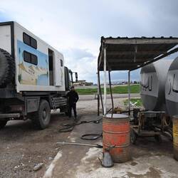 Auch die beiden Selbstzünder bekommen Saft, wenngleich an einer eher improvisierten Zapfanlage - und zu einem lausigen Dollarkurs. Aber immer noch um mehr als die Hälfte billiger als in Deutschland.