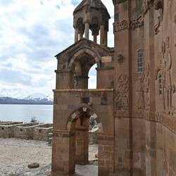 Deutlich interessanter finde ich indes das finale Sightseeing-Highlight dieser Reise: die über 1000 Jahre alte Kirche zum Heiligen Kreuz auf der Mini-Insel Akdamar. Das zwischen 915 und 921 n. Chr. vom Mönch Manuel erbaute Gotteshaus ist üppig verziert mit armenischer Sakralkunst: Innen bunte Malerei, außen aufwändige Reliefs, die beileibe nicht nur biblische Geschichten darstellen. Manuel, selbst Architekt und Bildhauer, hatte offensichtlich begnadete Künstler und Steinmetze an der Hand. Derart reicher Skulpturenschmuck ist in dieser Zeit einmalig - andernorts ist er erst ein Jahrhundert später bekannt.