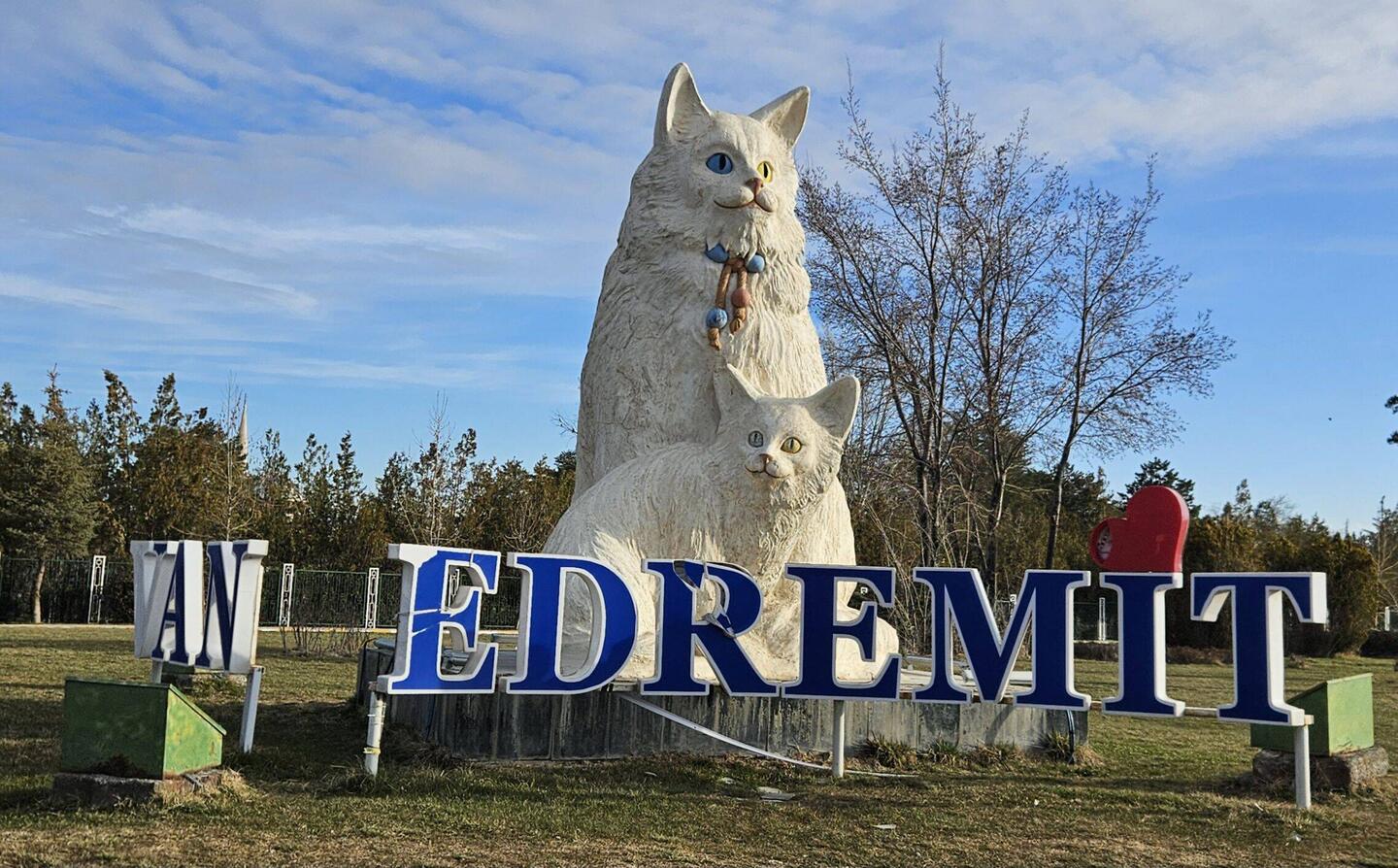 In Van sind seltene Katzen zuhause, mit zwei unterschiedlich gefärbten Augen. Die (bzw. das Denkmal, das man ihnen gesetzt hat) möchte ich der geneigten Gefolgschaft keinesfalls vorenthalten.