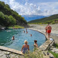 Aus den Felswänden, die bei Benjës den Eingang der Langaricësschlucht bilden, sprudelt wohltemperiertes, leicht schwefelig riechendes Thermalwasser. Es sammelt sich in steinernen Becken -Read more