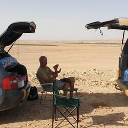 Heute bereiten wir uns auf vier Nächte in der Wüste vor. Der Mondeo bekommt eine neue Lichtmaschine, inshallah. Und wir bunkern Wasser & Speise.