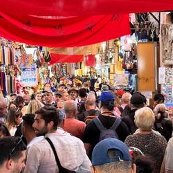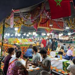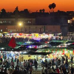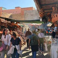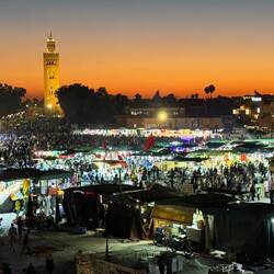 Marrakech (deutsch: Marrakesch), beliebtestes Touristenziel von Marokko mit über 14 Millionen Besuchern im Jahr. Keine andere marokkanische Stadt wird so vom Massentourismus überrollt.