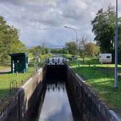Also Planänderung. Google Maps geöffnet, fünf Minuten weitergefahren und da steht er: ein kleiner, feiner Platz am Wasser, ruhig, ordentlich und mit genau der richtigen Portion Charme. Wir parken, atmen durch und sind uns einig: Das Schicksal hat zwar manchmal seltsame Methoden, aber diesmal war es auf unserer Seite.