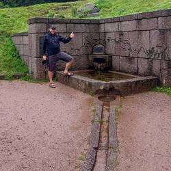 Unser erster Halt: die Quelle der Mosel. Ein Ort, der auf der Landkarte gross klingt, in Wirklichkeit aber eher wie ein übermotivierter Bach wirkt. Zwischen Steinen blubbert ein bisschen Wasser hervor und doch: hier beginnt ein Fluss, den später halbe Reisebusladungen bestaunen. Wir machen ein paar Fotos, lächeln in die Kamera, und fahren weiter.