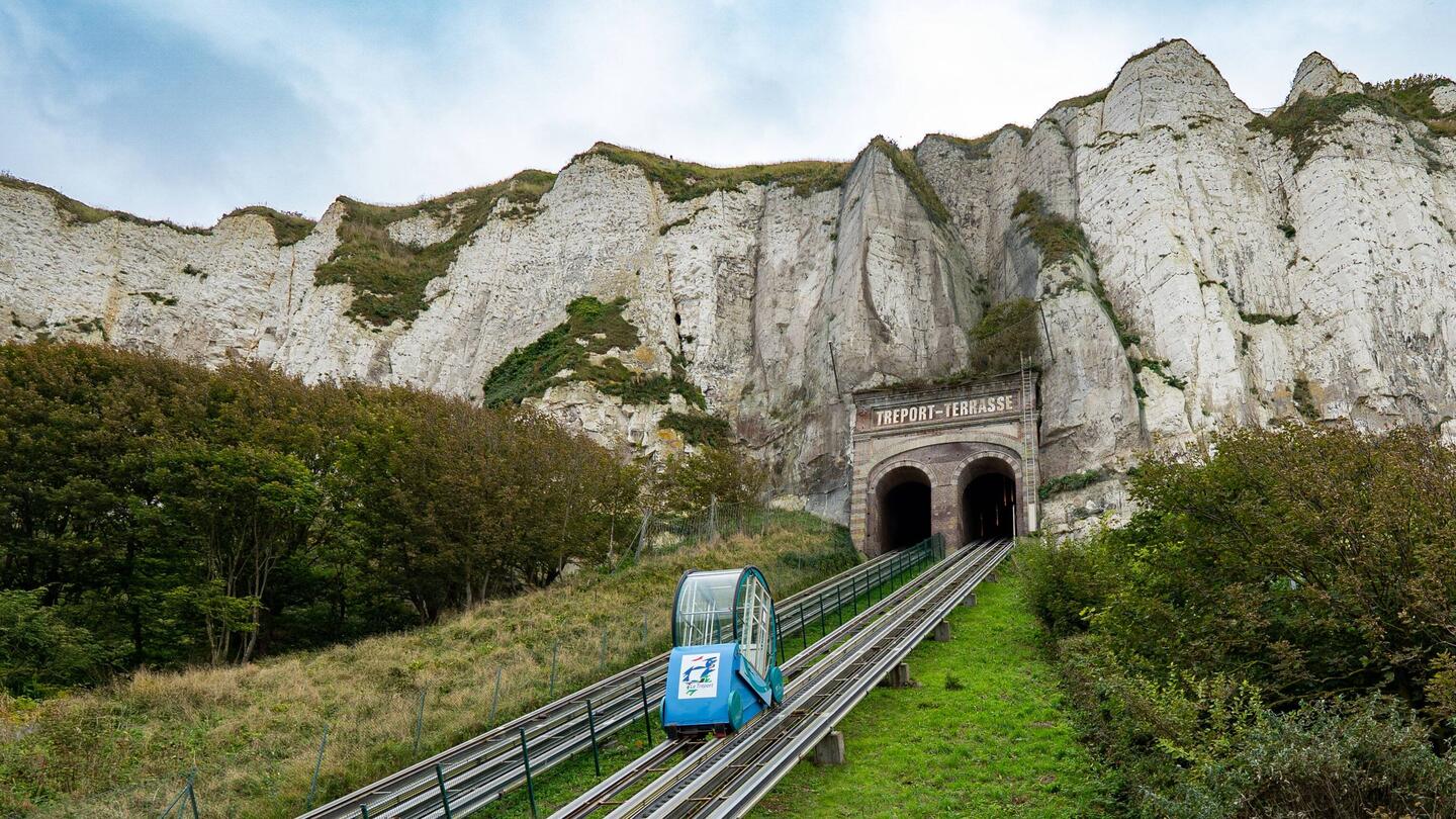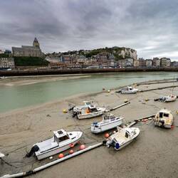 Le Tréport überrascht uns gleich mit einem Hafen, der uns fast den Atem verschlägt. Hier hat’s voll Eppe! Acht Meter Unterschied, sagen sie, und wenn man in dieses Hafenbecken runterschaut, wirkt es fast wie ein Fjord. Die Fischerboote dümpeln unten wie Spielzeugschiffchen, und man stellt sich unwillkürlich vor, wie’s wohl aussieht, wenn das Wasser zurückkommt und alles wieder hochschiebt.
