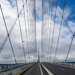 Links und rechts nur Wasser, man fährt hoch wie auf einen Hügel und sieht dabei weit in die Landschaft hinaus. Ein richtiges Erlebnis und auch ein kleiner Nervenkitzel, weil der Wind da oben tüchtig bläst.
