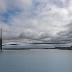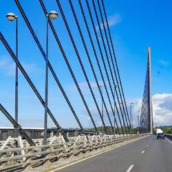 Also weiter, und zwar über die Pont de Normandie. Ein richtig eindrückliches Bauwerk! Diese Schrägseilbrücke spannt sich über die Seine-Mündung und verbindet Honfleur mit Le Havre. Ganze 2141 Meter lang ist das Teil, und mit einer Hauptspannweite von 856 Metern war sie bei ihrer Eröffnung 1995 die längste Schrägseilbrücke der Welt. Heute gehört sie immer noch zu den imposantesten Brücken Europas.