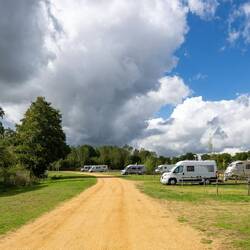 90 Kilometer später erreichen wir den Stellplatz, den wir uns ausgesucht hatten. Doch die Idylle ist schwer zu erkennen: Buden werden aufgebaut, Kabel über den Boden gezogen, es riecht nach Jahrmarkt. Romantisch klingt anders.