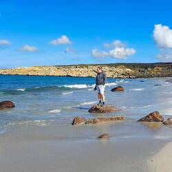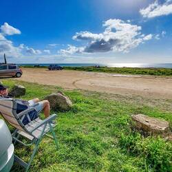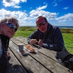 Wir rollen weiter, ein kleiner Stopp zum Einkaufen – Knutschi schnurrt zufrieden mit gefülltem Kühlschrank. Um 18 Uhr erreichen wir unser Tagesziel. Und was für eins! Direkt am Meer. Das Wasser wild, der Wind pfeifend, der Himmel groß. Wir stehen da, müde und durchgerüttelt – und fühlen uns einfach nur glücklich.Read more