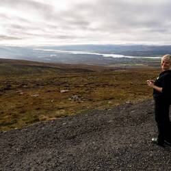Danach machen wir uns auf die letzten 30 km auf Island, von insgesamt 3800km. Zuerst steil den Berg hoch, wir geniessen nochmals die Aussicht auf die grosse Ebene, bevor wir bei 5 Grad in den Bergen Richtung Meer abfahren. Die Fähre sehen wir schon von weitem und wir kommen um halb vier am Hafen an.
