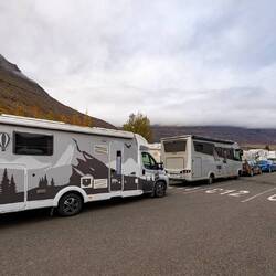Nach über 2 Stunden im warmen Wasser verlassen wir eingeweicht das Bad, packen im Knutschi unsere Sache für die Fähre zusammen und fahren nach Egilsstadir an eine Tankstelle. Schliesslich müssen wir unser Knutschi noch schön sauber reinigen, damit wir dann überall wieder einen guten Eindruck machen.