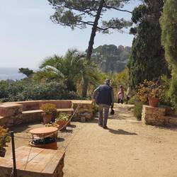 Ein neuer Tag ist angebrochen in Blanes auf dem Campingplatz El Pinar. Es ist warm, aber etwas bedeckt. Das ist ganz gut so, denn gestern habe ich mir einen ordentlichen Sonnenbrand zugezogen. Die Dauercamper von nebenan haben gestern Nachmittag gepackt und sind nach Hause gefahren. Ostern ist vorbei. Wir teilen uns nun den Platz mit einer kleinen, netten Gruppe bestehend 5-6 Sunlight und Carado Fahrern und einem Kastenwagen, die es auch über Ostern hier her verschlagen hat. Sie nennen sich "Zehn Köche und zehn Schrauber". Das trifft sich ganz gut. Da können wir mal wegen unserem Kühlschrank nachfragen. Denn der mag seit ein paar Tagen keinen Strom mehr und will nur noch über Gas kühlen. Es ist unglaublich ruhig hier. Man hört im Grunde nur das Meer rauschen. Die Sanitäranlagen liegen genau gegenüber und sind nagelneu und super gepflegt. Alles andere ist noch so ziemlich in Vorbereitung auf die Saison. Nach dem Frühstück, das wir heute in aller Ruhe angegangen haben, starten wir mit dem Fahrrad zum Botanischen Garten Marimurta. Vorher schauen wir noch in der Stadt nach, ob heute Wochenmarkt ist. Leider nicht. Wir folgen der schmalen Straße den Berg hinauf und bewundern dabei den Ausblick auf den Hafen und auf die Stadt. Sieben Euro kostet der Eintritt in den Botanischen Garten, der eigentlich aus drei Gärten besteht. Der erste Garten ist geprägt durch Steingärten, afrikanisches Trockengebiet, einer Laube und Pflanzen aus Mexiko. Im zweiten Garten finden wir Obst-, Gemüse-, und Weingärten, einen Palmgarten, einen Etnobotanischen Garten und einen "Biergarten" zum Ausruhen. Zum dritten Garten gelangen wir durch eine Unterführung. Es ist ein mediterraner Garten. Er fasziniert uns nicht nur durch seine mediterrane Bepflanzung, sondern auch durch die tollen Aussichten aufs Meer und auf die Felsenküste. Traumhaft. Wer Pflanzen und Natur mag, der sollte sich den Botanischen Garten nicht entgehen lassen. Er ist sicher zu jeder Jahreszeit interessant. Und wo es noch nicht so recht blühen will, wird mit Kunstblumen nachgeholfen. So gesehen bei unserem Rundgang, als Gartenarbeiter einen Pavillon mit den Blüten einer künstlichen Bougainvilla verschönen. Nach ca 2 Stunden haben wir unseren Rundgang beendet. Es ist kaum Publikumsverkehr im Botanischen Garten. Auch ein Vorteil der Vorsaison. Hungrig geworden, suchen wir auf dem Rückweg eine der Strandbars auf. Ein spanisches Omelette, Pano catalan und eine Sangria stehen auf meinem Wunschzettel. Oh je! Ein halber Liter nur für mich. Da muss ich jetzt durch. Und so genießen wir in der Sonne sitzend