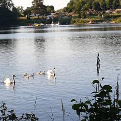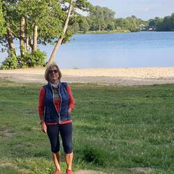 Nach dem Abendessen möchte ich dann aber doch noch sehen, wo wir überhaupt Quatier genommen haben. Brigitte begleitet mich auf dem Spaziergang zum und rund um den Silbersee, der ganz idyllisch im Licht der Abendsonne liegt. Der See ist nun wirklich nicht groß, erfüllt aber alle touristischen Anforderungen, vom Badestrand mit Liegewiese, Tretbootverleih, Ferienhausanlage, Freizeitpark, Silbersee-Alm, Biergarten, Restaurant, Hotel usw. ist alles vorhanden. Da kann man mal sehen, was man aus einem Baggersee alles machen kann. Nicht umsonst heißt er deshalb wahrscheinlich Silbersee. Alles am See wird versilbert. ;-)